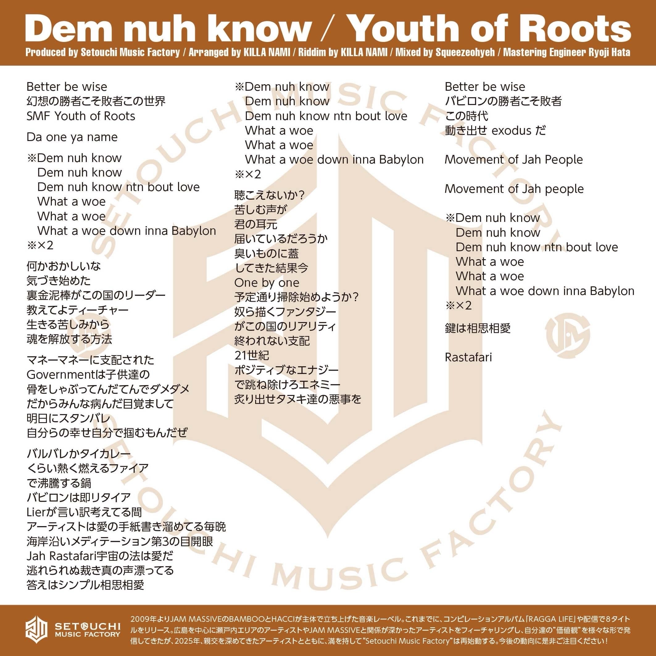 Youth of Roots/Dem nuh know7inch RECORD[SMFR004]